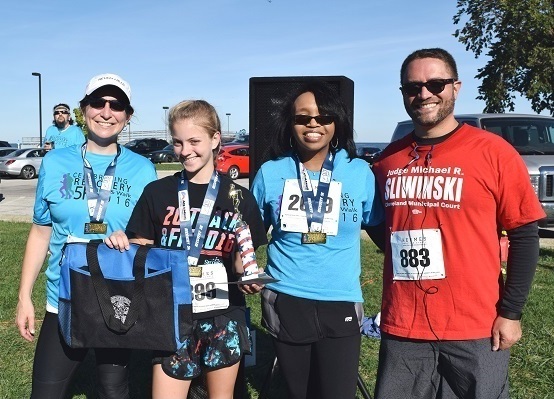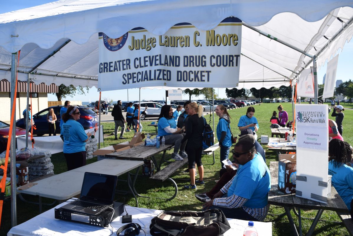 1st place finishers shown here with (L-R) Cleveland Director of Public Health Merle Gordon, Greater Cleveland Drug Court Judge, the Honorable Lauren C. Moore and the Honorable Michael R. Sliwinski.