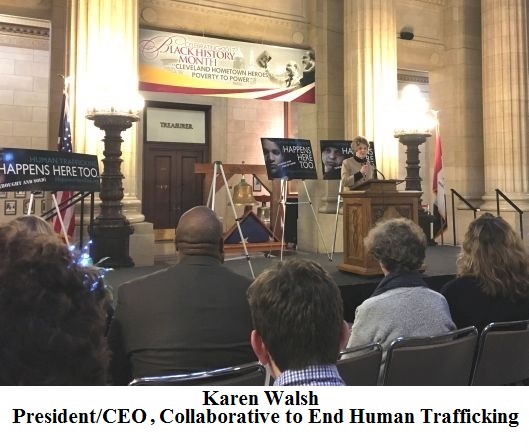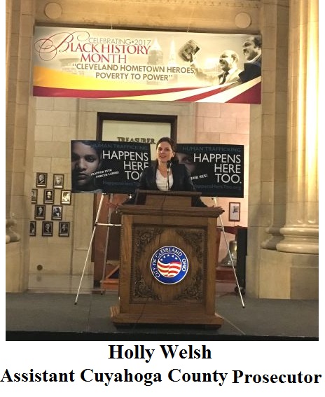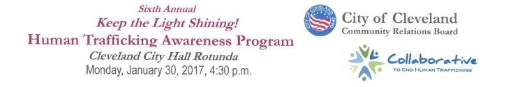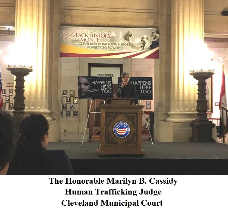 On Monday, January 30, 2017, the Honorable Marilyn B. Cassidy and her Freedom Lives in You (F.L.Y.) Human Trafficking Docket team participated in the 6th Annual Keep the Light Shining! Human Trafficking Awareness Program at Cleveland City Hall.  Greater Cleveland's Coordinated Response to Human Trafficking is a multi-disciplinary group working together to create a coordinated and comprehensive response to human trafficking in northeast Ohio. For more information, please visit HappensHereToo.org.
