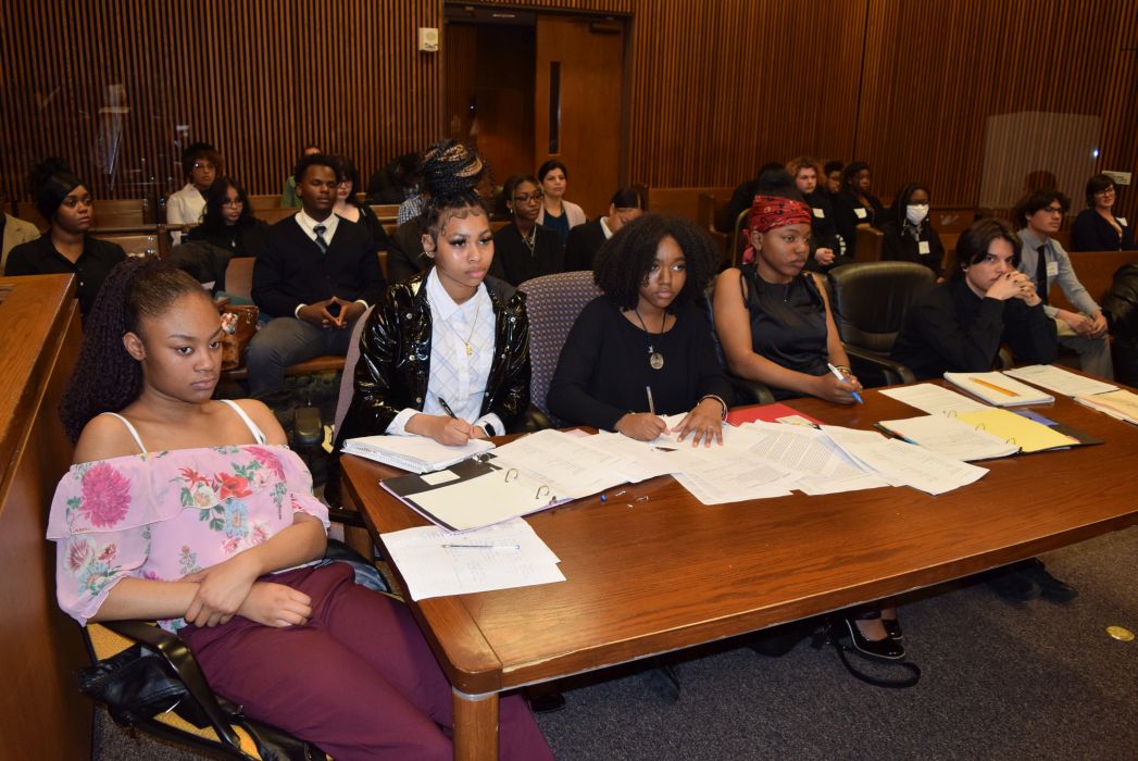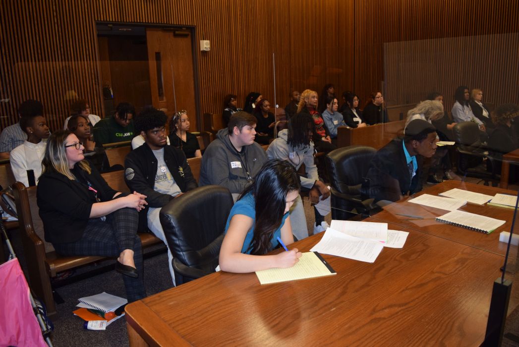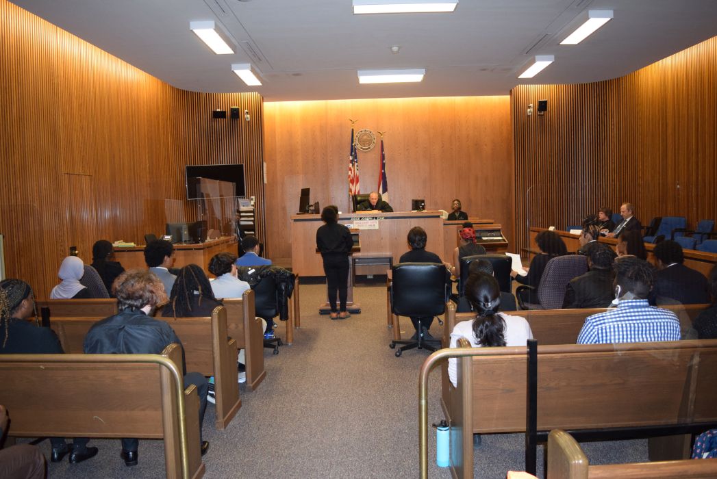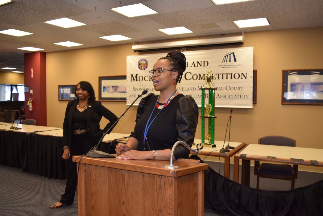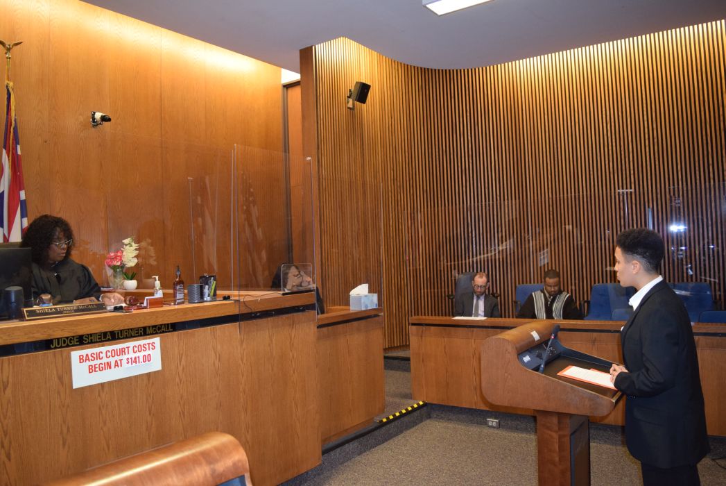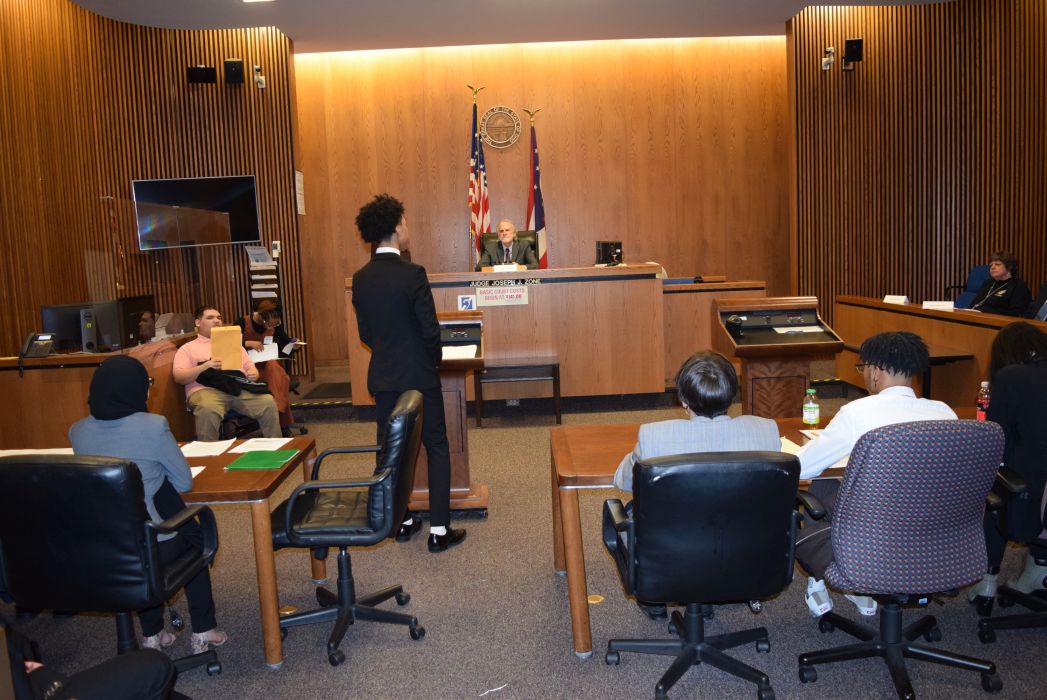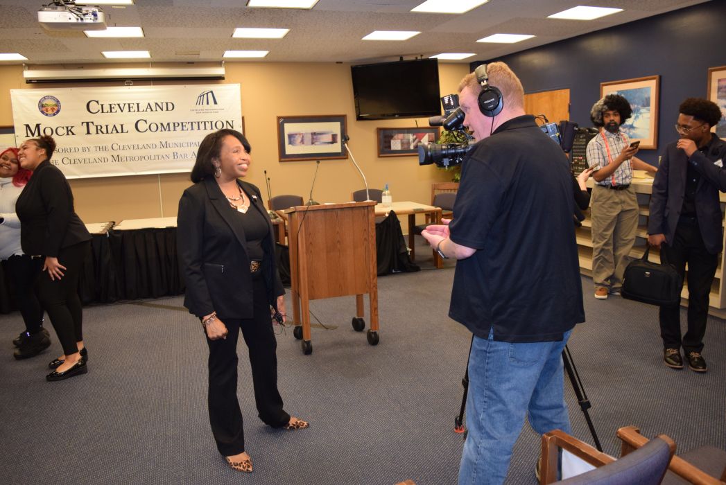 On Friday April 28, 2023, for the first time since 2019, the Cleveland Mock Trial returned to the Justice Center. Several Cleveland Municipal Court judges participated in the day long event including Judge Mark R. Majer, Judge Andrea Nelson Moore, Judge Charles L. Patton, Jr. and Judge Shiela Turner McCall along with former Cleveland Municipal Court Judge Robert Triozzi. Click here for schedule details including the full list of competing schools.