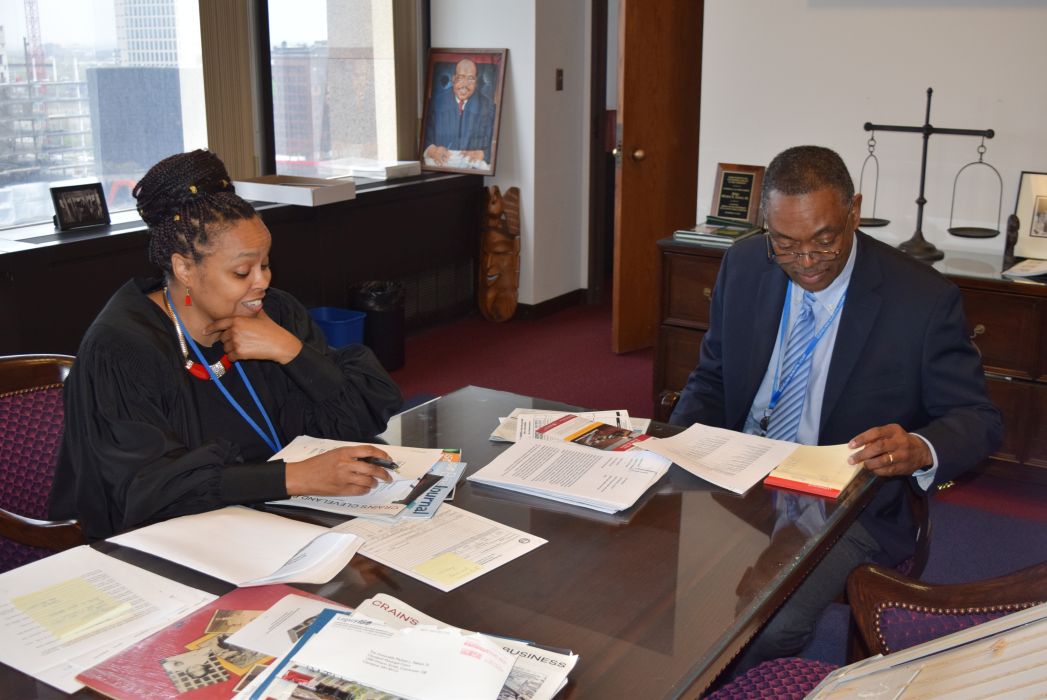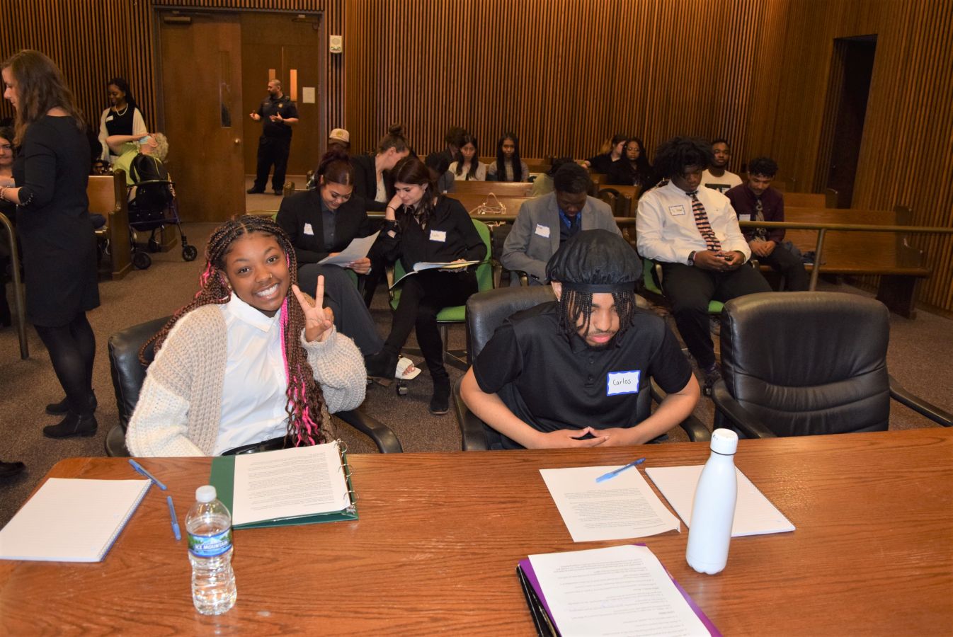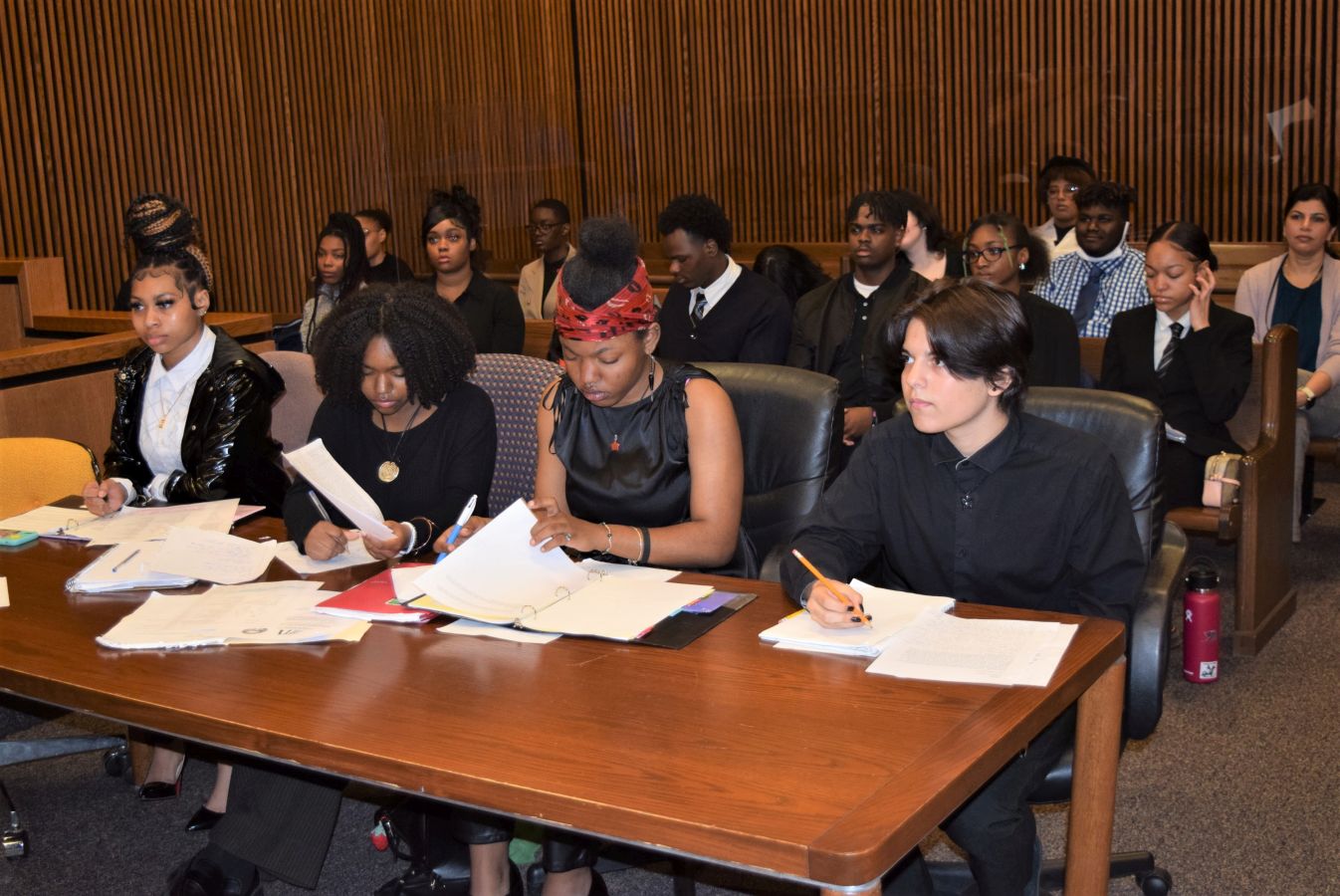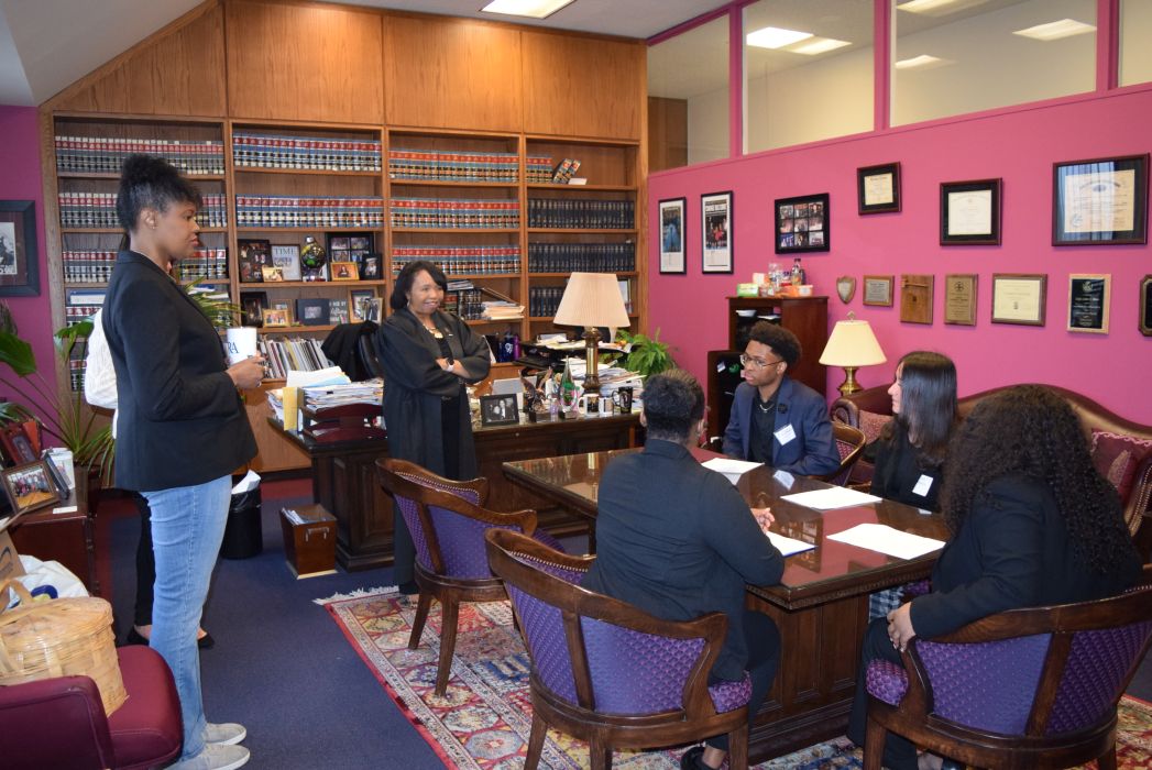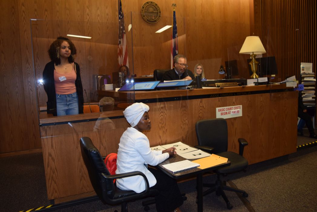 On Friday April 28, 2023, for the first time since 2019, the Cleveland Mock Trial returned to the Justice Center. Several Cleveland Municipal Court judges participated in the day long event including Judge Mark R. Majer, Judge Andrea Nelson Moore, Judge Charles L. Patton, Jr. and Judge Shiela Turner McCall along with former Cleveland Municipal Court Judge Robert Triozzi. Click here for schedule details including the full list of competing schools.