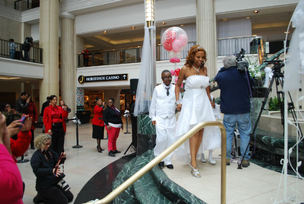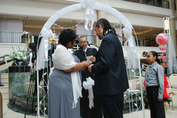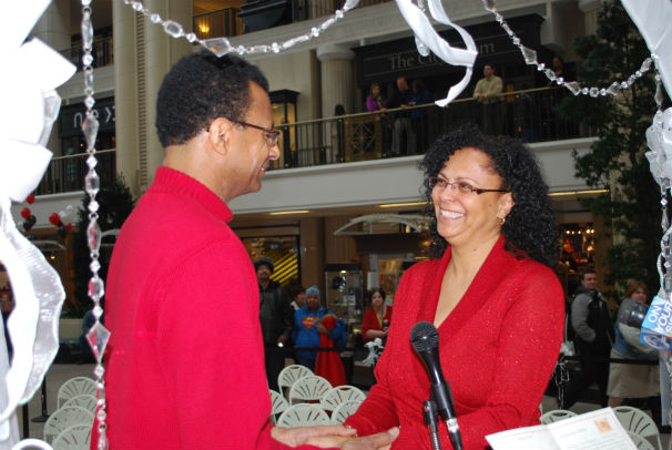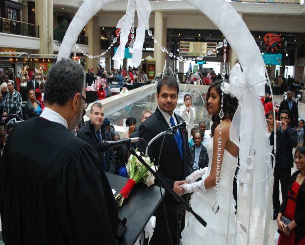 Charles L. Patton Jr. performed the marriage ceremonies, which attracted hundreds of daytime shoppers and onlookers. It was the fifth year in a row the Cleveland Municipal Court conducted weddings at Tower City, an idea implemented by Judge Moore because Valentines Day fell on a Saturday in 2009 and the court was not in session.