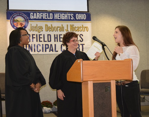 who have been able to participate in the Greater Cleveland Drug Court Program because of a $975,000 federal grant awarded in 2013. Garfield Heights Municipal Judge Deborah J. Nicastro was excited to have the ceremony in her community.
